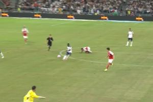 体育资讯07月31日讯 这球漂亮!萨尔超远距离吊射破门,阿森纳0-1落后热刺!