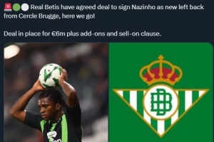 罗马诺表示:“贝蒂斯已同意签下色格拉布鲁日左后卫弗拉维奥-纳齐尼奥,Here We Go!”
