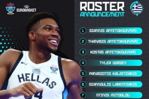 体育资讯8月25日讯 希腊男篮欧锦赛12人名单出炉,字母家三兄弟携手入选。
