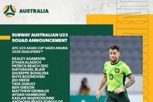 体育资讯8月25日讯 北青体育撰文谈到澳大利亚U22队出战U23亚洲杯预选赛的名单,文章表示,澳大利亚U22队24人名单仅4人旅欧,澳超金靴值得重点提防。