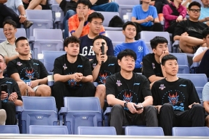 此役,山东男篮的管理层人士以及教练组成员今天来到了现场观战,包括董事长胡克生,竞训总监纪民尚,主帅邱彪,助理教练李敬宇。