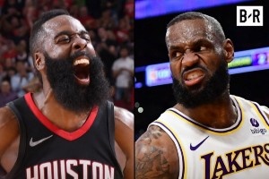 BR晒出多张对比图,分别是哈登和詹姆斯、乔丹、奥拉朱旺、雷-阿伦、帕克、字母哥的对比。