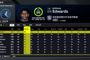 爱德华兹95全队最高,兰德尔86,戈贝尔84,麦克丹尼尔斯和纳兹-里德同为82,康利和迪文岑佐均为78。