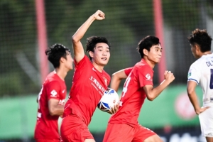 补时阶段,海港富盛经开队在对手禁区外围展开围攻,宋春晓将球吊入禁区,张慧宇禁区内成功将球打进,帮助球队扳平比分。最终,海港富盛经开队2比2战平了对手。