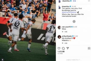 赛后堂安律社媒晒出和队友庆祝照,并配文写道:“两战两胜,而且我收获了法兰克福生涯的德甲首球,多么美妙的一天!国际比赛日后再见!”