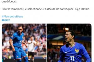 首次入选!法国队官方:谢尔基因伤退出本期名单,补招埃基蒂克