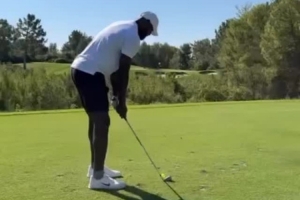詹姆斯晒与友人冒着102华氏度(38.9摄氏度)高温练习打高尔夫的一系列动态及合影。