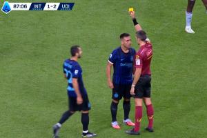体育资讯09月01日讯 国米vs乌迪内斯第87分钟,劳塔罗被吹犯规,劳塔罗非常生气地向裁判质疑判罚,被裁判出示黄牌。