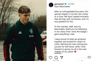 加纳乔写道:“亲爱的曼联:在这段难忘的五年时光后,我人生中这一段特别的旅程如今画上了句号。我们一起创造了许多将永远留在我心中的时刻,我对此深怀感激。”