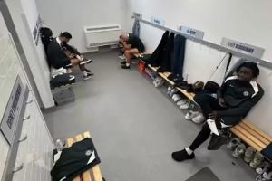 迪萨西确实发布了一张他、斯特林和其他炸弹小队成员在简陋小房间换衣服的照片。