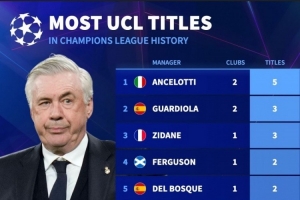体育资讯9月16日讯 德国转会市场统计了教练、球员夺得欧冠的次数,并分别列出榜单,教练之中安切洛蒂5冠居首,球员之中莫德里奇、克罗斯、纳乔、卡瓦哈尔、亨托6冠最多。