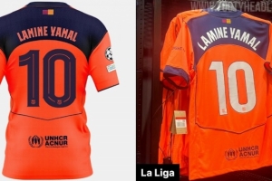 体育资讯9月19日讯 著名足球装备网站FootyHeadlines报道,巴萨第三球衣身后印字因为西甲规定只能使用白色字体,效果看起来差多了。
