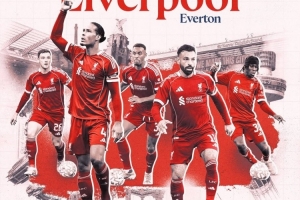 利物浦官方社媒发布了为此役制作的海报,范迪克、萨拉赫、罗伯逊、弗林蓬、赫拉芬贝赫出镜。