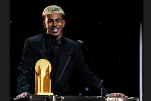 体育资讯9月23日讯 2025年金球奖颁奖典礼在北京时间今天凌晨进行,巴萨女足球员邦马蒂连续三年斩获女足金球奖,亚马尔则获得科帕奖。