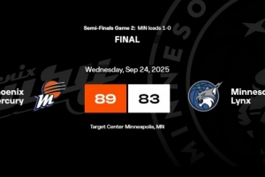 体育资讯9月24日讯 今天结束的一场WNBA半决赛,菲尼克斯水星89比83击败明尼苏达山猫,将大比分扳为1比1。