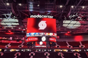 开拓者主场摩达中心近日公布了全新的中场大屏幕以及球场周边曲面屏的升级。