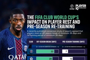 FIFPRO指出,根据相关研究,球员赛季之间的休赛期建议最少28天,而季前训练时间也建议最少28天,但受到世俱杯的影响,球员们根本得不到应有的休息时间。