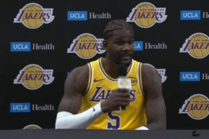 体育资讯9月30日讯 今天,湖人新援中锋艾顿参加了球队媒体日活动。