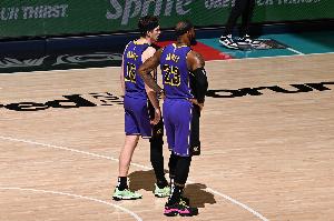 记者追问:“那他老爸呢?”里夫斯笑着说到:“老詹还在练,还在进步中。”