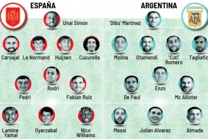 马卡对比西班牙vs阿根廷阵容:梅西、斯卡洛尼10分,西班牙5人9分