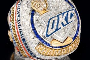 雷霆冠军戒指:14K白金与黄金打造 钻石镶嵌球员号码&内嵌副戒