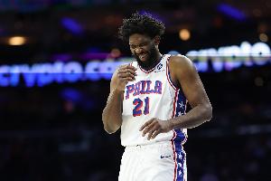 体育资讯10月25日讯 恩比德首秀打了20分钟9投仅1中,三分4中0、罚球2中2拿到4分6篮板2助攻1盖帽,正负值-16全场最低。