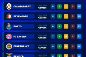 本赛季欧洲前十联赛8队保持不败,五大联赛仅剩拜仁、亚特兰大