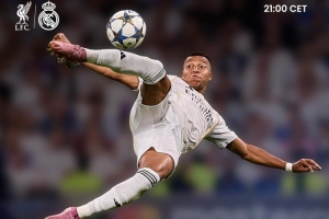 皇马官方社媒发布了赛前海报,姆巴佩潇洒侧钩射门出镜,配文:“欧洲中部时间今晚9点,剩下的你懂的,欧冠气氛弥漫而来!”