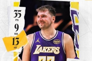 35+9+13!湖人发布东契奇数据海报:又一个表现出色的夜晚