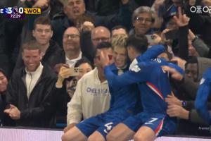 体育资讯11月09日讯 英超第11轮,切尔西对阵狼队。73分钟,加纳乔带球奔袭传中,内托轻松推射破门。内托破门后找加纳乔一起坐场边再现经典庆祝。