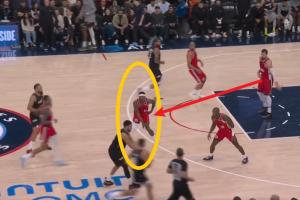 疑似比尔受伤瞬间:比尔完成抢断 在快攻中刹车急停救球导致