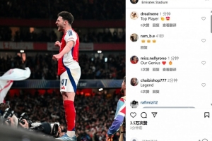 本场比赛赖斯任意球梅开二度,赛后也当选全场最佳球员。赖斯在个人社媒晒出站在广告牌庆祝进球照片,没有任何配文。