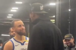 赛后,库里和杜兰特在更衣室通道寒暄拥抱,还聊了聊。