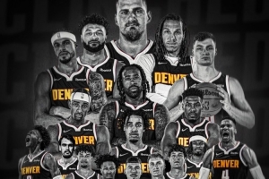 赛后掘金官方发布了季后赛海报:“锁定第四与首轮主场优势🔒!”