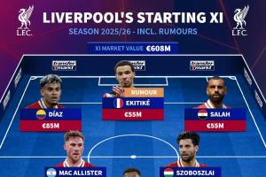 体育资讯04月24日讯 德转对利物浦下赛季的阵容进行了预测,埃基蒂克、科尔克兹、怀森、吉滕斯、穆里略入选。其中,首发阵容的身价超过6亿欧,替补阵容的身价接近4.3亿欧。