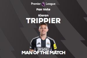 体育资讯4月27日讯 英超第34轮,纽卡斯尔3-0伊普斯维奇。赛后,纽卡后卫特里皮尔当选全场最佳球员。