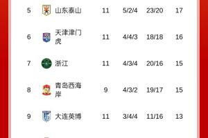 体育资讯05月05日讯 中超第11轮今日6场战罢,最新积分榜形势如下。蓉城第1,国安、海港分列3、4名,泰山输球仍居第5,津门虎击败河南升至第六,玉昆赢球升至第十一,海牛胜亚泰获赛季首胜,亚泰五轮不胜降至垫底。