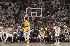 体育资讯05月07日讯 NBA季后赛东部半决赛G2,步行者120-119险胜骑士。哈利伯顿最后时刻落后完成三分绝杀!