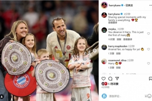 凯恩帮助拜仁赢得本赛季德甲冠军,这也是他职业生涯首冠。凯恩在社交媒体上晒出一家人的合照,并配文:“与我的家人分享特别时刻是最重要的(就是一切)。”