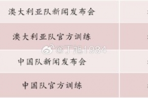 澳大利亚队明天17点-17:30举行新闻发布会,18点-19点官方训练,国足明天18:30-19点举行新闻发布会,19:30-20:30官方训练。