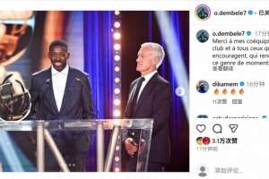 登贝莱在社媒发文写道:“感谢我的队友、球队工作人员,俱乐部以及所有激励我的人们,是你们让这样的时刻成为可能。”