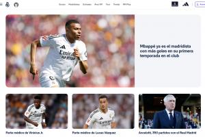 截至本文发出,皇马官网首页的最新动态是维尼修斯和巴斯克斯的两则伤情公告,置顶文章则是介绍姆巴佩39球打破皇马新秀首赛季的纪录。首页有一篇介绍安切洛蒂350场的文章,没有安切洛蒂的离任公告。