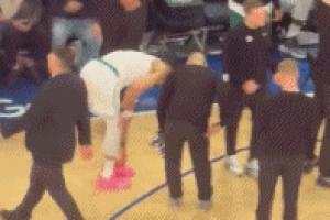 中场时塔图姆左脚踝不舒服 进行简单的脚踝训练