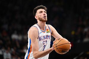 体育资讯5月14日讯 NBA季后赛西部半决赛G5,雷霆半场54-56落后掘金。