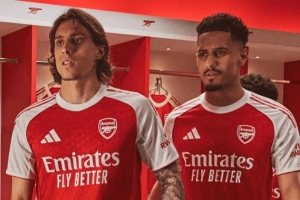 每件正版主场球衣均采用阿迪达斯HEAT.RDY科技提升舒适度、贴合度与排汗性能,关键部位采用结构化网眼面料,后颈处配备3D工程织物确保持续通风。球迷版AEROREADY款式沿用相同设计,并含有再生材料,配套纯白主场短裤饰以红色细节,红袜同样印有哥特体“A”字母,搭配阿迪达斯标志性三条纹。