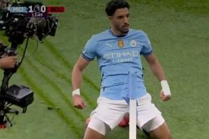 体育资讯05月21日讯 曼城vs伯恩茅斯第14分钟,马尔穆什世界波!