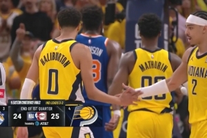 体育资讯6月1日讯 NBA东部决赛G6,步行者首节25-24领先尼克斯。