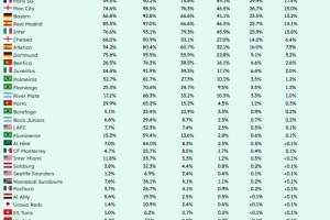 体育资讯6月4日讯 ClubEl预测了世俱杯各球队晋级各阶段的概率,并列出表格,巴黎夺冠概率17.5%最高,迈阿密国际小组出线概率33.7%。