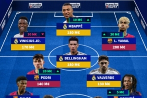 西甲最贵11人阵容:亚马尔姆巴佩领衔,玛玛达是非皇萨球员独苗