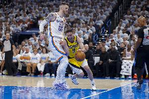 体育资讯6月12日讯 NBA总决赛G3,雷霆半场60-64落后步行者。
